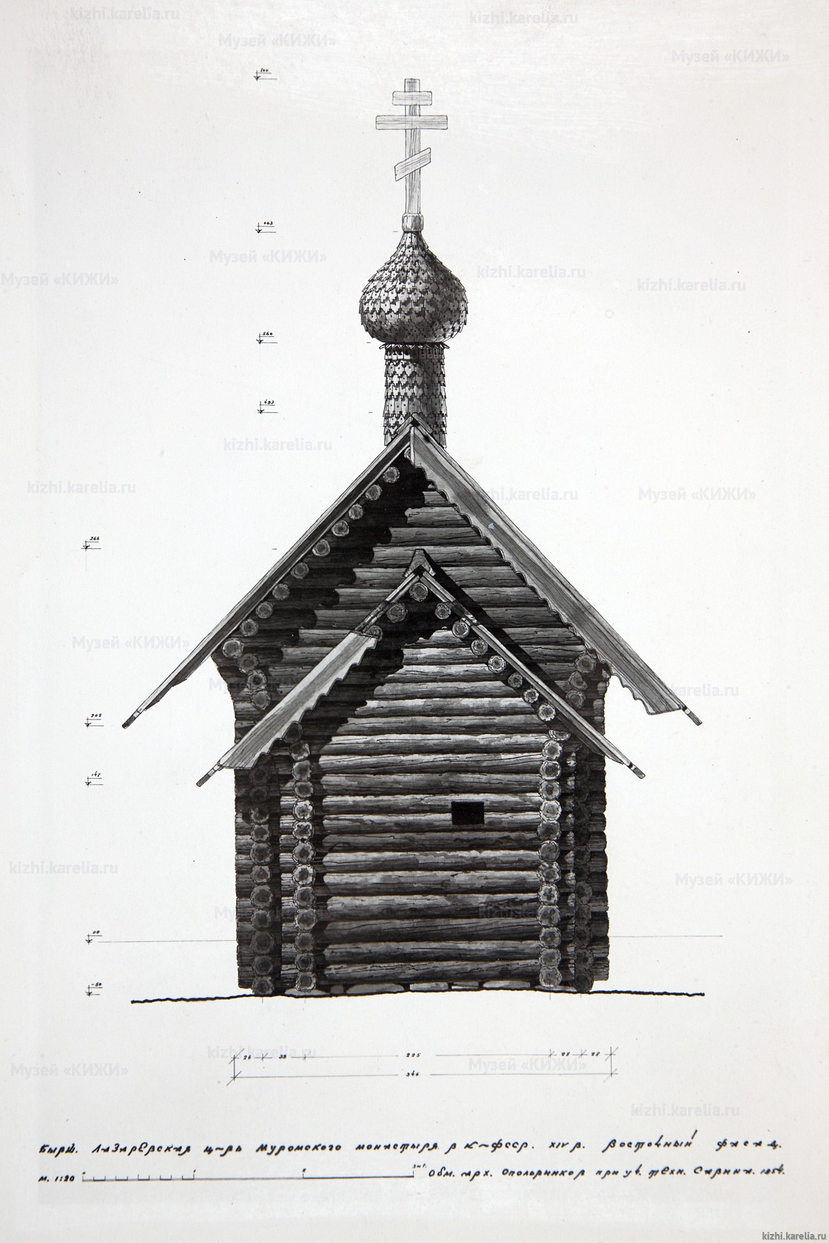 Церковь Воскрешения Лазаря. Фасад западный.Церковь Воскрешения Лазаря. Фасад восточный.Церковь Воскрешения Лазаря. План.Церковь Воскрешения Лазаря. Разрез продольный.