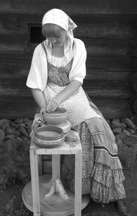 Кроме кижан, петербуржцев, в экспозиции работает Екатерина Логвиненко, научный сотрудник Карельского краеведческого музея. Третий год подряд она работает во время своего отпуска на кижской земле, демонстрируя гончарное ремесло, одно из самых древних, освоенных человечеством занятий. Ножной гончарный круг, на котором работает Екатерина, сделан по ее собственному чертежу.