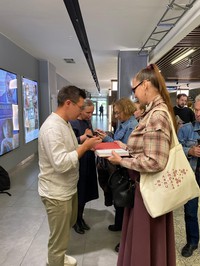 На показе присутствовали авторы масштабного проекта «Русская свадьба Заонежья» фотохудожник Денис Князев и руководитель фольклорного ансамбля музея «Кижи» Наталья Михайлова. Зрители имели возможность задать вопросы, поделиться впечатлениями. Автор самых интересных вопросов получил в подарок одноименную книгу, видеоприложением к которой и является этот фильм.