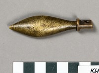На квадратном навершии откручивающейся крышки расположено сквозное отверстие с прорезью. Вероятно, прорезь была сделана позднее и служила для перерезания нитей.