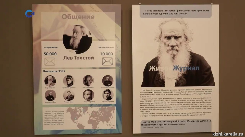 В выставочном зале музея «Кижи» в Петрозаводске на площади Кирова, 10а продолжает работать выставка «Толстой как блогер»