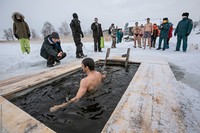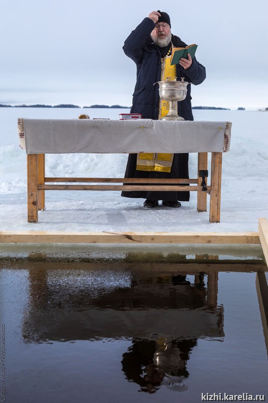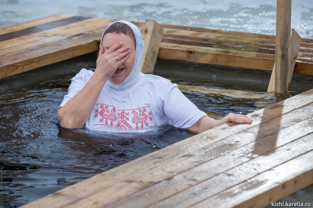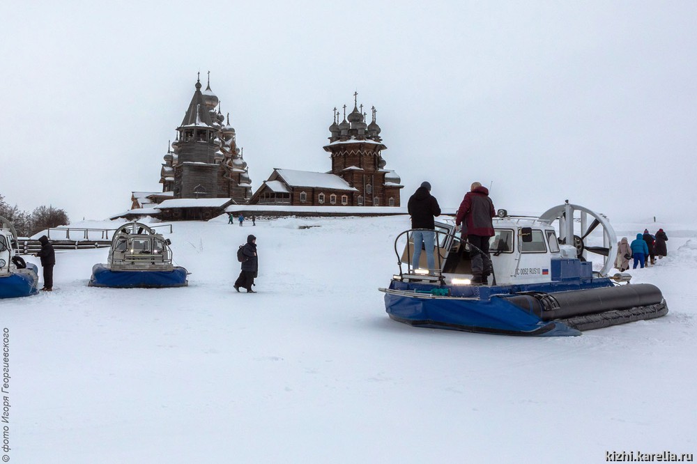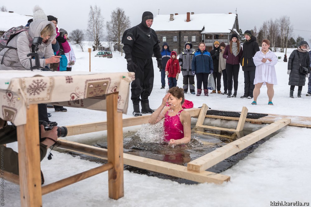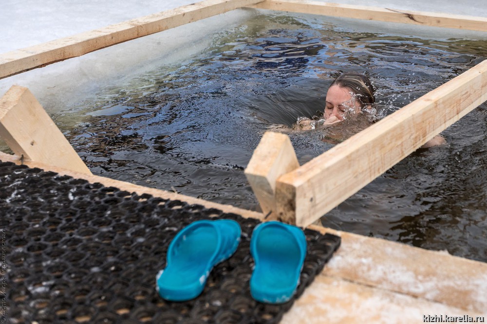 - совершить омовение в проруби на берегу Онежского озера — под открытым небом, в тишине и величии зимнего острова Кижи,