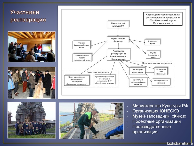 Помимо конкретных островных мероприятий музей «Кижи» на всех уровнях согласовал проект реставрации. А в 2008 году вышло Распоряжение Правительства РФ №1633-р от 07.11.2008 г. о финансировании реставрационных работ.