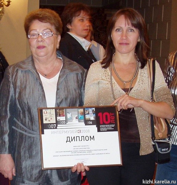 Музей «Кижи» оставил очень приятное впечатление у гостей и жюри. В номинации «Музей для туристов» Специального диплома жюри удостоен проект музея «Материальная и духовная культура русских Заонежья XIX века», который представляла на Интермузее заместитель директора музея Ольга Титова. Привлекательной для гостей и коллег стала презентация «В гостях у праздника с Петрушкой», которую представили Татьяна Ковальчук и Светлана Новицкая. Как и в прошлом году, на стенде музея работала специально приглашенная московская пресса.