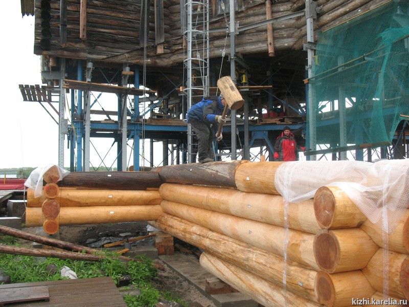 Но это — в будущем, а пока завершаются фундаментные работы, и идет реставрация на самом нижнем — VII ярусе Преображенской церкви — венец за венцом бревна возвращаются в сруб.