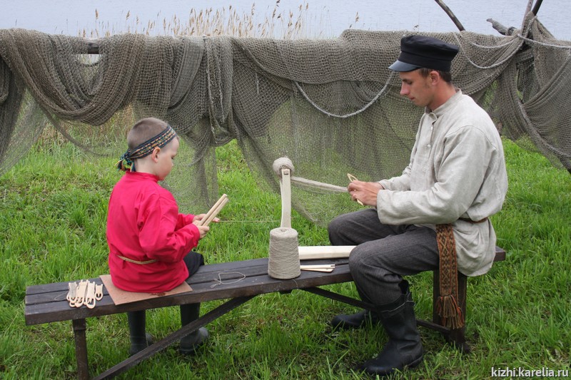 Рыболовство всегда было одним из самых распространенных промыслов на территории Карелии. Крестьяне ловили огромное количество рыбы, которую запасали для своей семьи и продавали в городах и на ярмарках. Поэтому в хозяйстве крестьянина обязательно имелись рыболовные снасти – невода, мережи, мерды и, конечно, сети. Сети крестьяне вязали сами. Обычно этим занимались в семье мужчины.