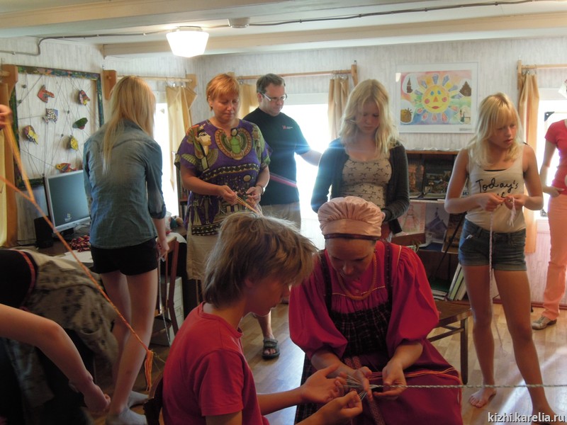 Порадовали ответы детей на вопросы финских журналистов, которые специально прибыли на остров сделать репортаж о нас и о карельской культуре. Шестиклассник Вейкко без труда сформулировал ответ на вопрос, где он находит карельское вокруг, сказав, что это его национальная рубаха (которая на нем надета!), дом Яковлева, у которого проходила съемка, и хороводы, которые только что водили на поляне. А еще он каждый вечер добавлял в свой словарь пару русских слов и старательно хотел ответить на вопросы нашего бессменного организатора и очень влюблённого в свое дело человека.