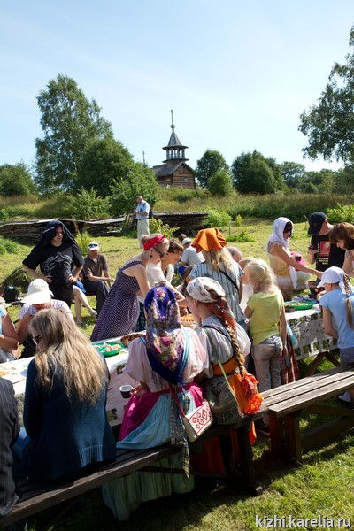 В заонежской деревне у часовенного праздника всегда была особая атмосфера. Собирались жители деревни, их гости, родственники из других мест… Дружно шли на праздничную службу, затем по гостям, а молодёжь гуляла весело с песнями, танцами, играми. Обстановка складывалась почти семейная, дружественная. В каждом доме столы ломились от угощения: хозяйка ждала гостей и привечала всех — знакомых и незнакомых… Недаром говорили: «праздник известен, да гости неизвестны». Такие праздники сплачивают людей, объединяют местных жителей. Традиция часовенных праздников на территории Кижской волости существовала издавна. На время она оборвалась, но в 1994 году была восстановлена музеем-заповедником «Кижи». В этом году местные жители и сотрудники музея отметили два часовенных праздника: день святых мучеников Кирика и Иулитты и день Пророка Илии.