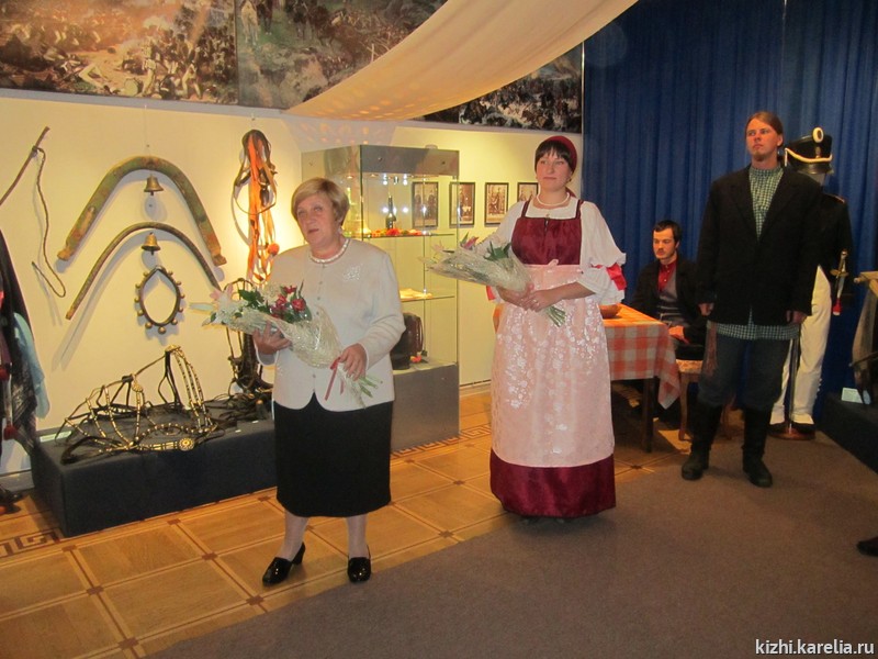 Открывая выставку, зам. директора музея Игорь Мельников представил гостям авторов выставки: «Авторами выставки является тандем сотрудников музея, который можно назвать удачным сочетанием опыта и молодости: Светлана Воробьева, начальник отдела истории и этнографии, кандидат филологических наук, имеющая огромный опыт создания фондовых выставок, и Надежда Ригоева, специалист по фольклору сектора изучения и музейной презентации фольклорного наследия, — для нее это первая выставка. Надо сказать, что Н. Ригоева — выпускница Петрозаводской консерватории им. А.К. Глазунова, и темой ее дипломной работы был обряд проводов в рекруты, впоследствии успешно реконструированный участниками ФЭТа. Дизайнер выставки — Ирина Панкова».