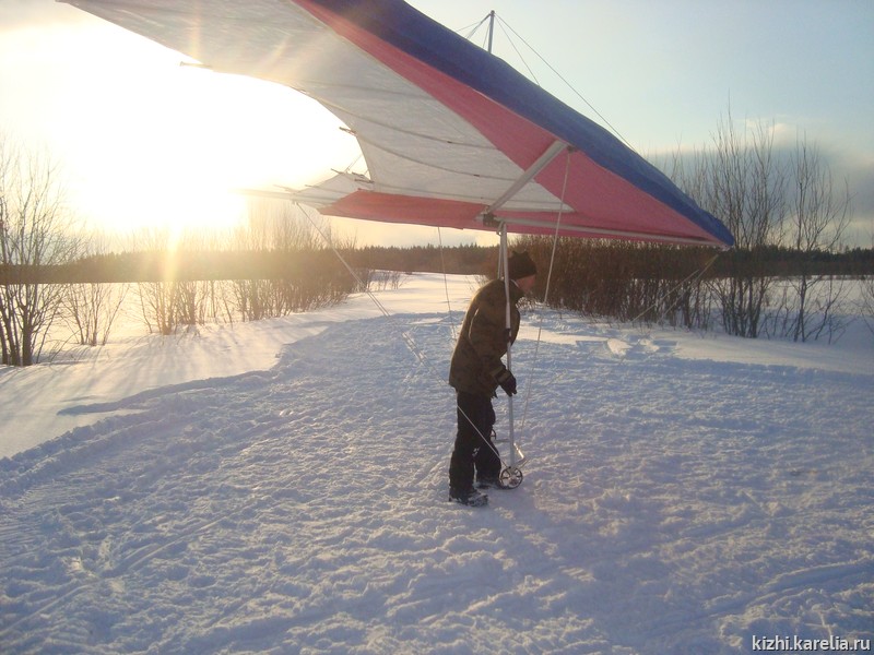 Вообще, мечта летать на дельтаплане — с детства. Лет в 12—13 я увидел передачу про иностранного спортсмена: он парил в небе, и на фоне играла музыка группы «Space». Потом показывают его: он стоит на склоне высокой горы и рассказывает свои впечатления: «Когда я поднимаюсь в небо, то все земное отступает — я становлюсь птицей!» Я смотрел на него и завидовал: этот мужчина парил над землей — это было упоительно, волшебно, здорово. И я подумал: «Я трус, у меня никогда не хватит духу сделать это, у меня не получится». Эти два чувства боролись очень долго: желание ощутить прелесть полета и боязнь этого самого желания. А потом в 1996 году уже здесь, на острове, я увидел параплан, и детские мечты вновь овладели мной. Тот спортсмен рассказал мне, где можно приобрести снаряжение и сам аппарат, но на то время все это стоило заоблачно дорого. Я решил во что бы то ни стало осуществить мечту. Параплан немного сложнее по конструкции, а значит стоит дороже, чем дельтаплан, — рассудил я и стал искать в Петрозаводске инструктора по дельтапланеризму, который бы научил меня всему. И я его нашел! Пришел на аэродром «Пески» и спросил такого человека — там действительно такой инструктор нашелся. Думаю, судьба помогла мне. С того самого дня я и летаю на дельтаплане, а еще с удовольствием слушаю ту самую группу «Space». - — Вы долго учились летать?
