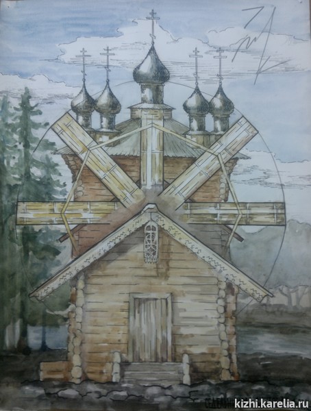 Идея моей работы заключается в том, что основой любой деревянной постройки является сруб — простая четырехстенная конструкция. На ней уже вырастает завершение: мельничный механизм с лопастями, купола церкви. Таким образом, из простого получается сложное, а конструктивность переплетается с эстетикой.
