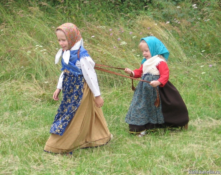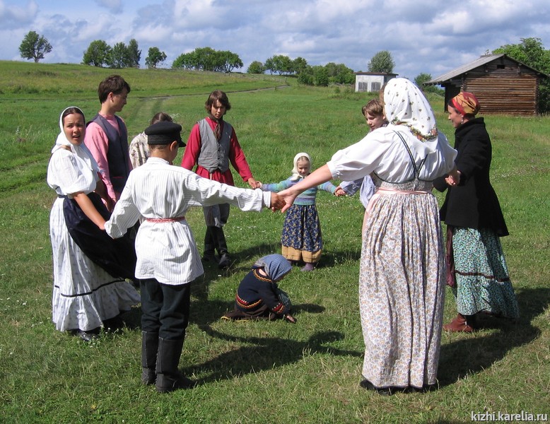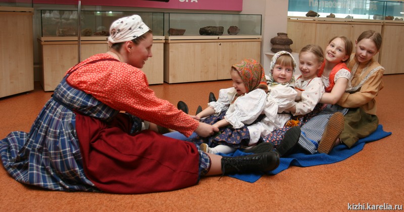 Активную жизнь народные игры получили в детской группе Фольклорно-этнографического театра музея-заповедника «Кижи». Коллектив был создан в 2000 году и изначально состоял преимущественно из детей сотрудников музея. Сейчас в группу принимаются все желающие. Возраст участников — от 3 до 13 лет. В соответствии с возрастными особенностями малыши (дошкольники) занимаются отдельно от детей школьного возраста. Деятельность коллектива основана на освоении традиционного игрового фольклора народов Карелии.
