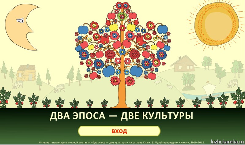 Два новых виртуальных путешествия погружают в историю карельского края. Игра-экскурсия «Два эпоса — две культуры» является частью большого фольклорного проекта и презентует одноимённую выставку, расположенную на острове Кижи. Игра состоит из видеорассказов, посмотрев которые, интернет-посетитель узнает о фольклоре коренных народов Карелии, представленном через эпические жанры — богатырские былины русского героического эпоса и карельские архаические руны. При успешном ответе на каверзные вопросы выдаётся традиционная именная грамота виртуального путешественника.