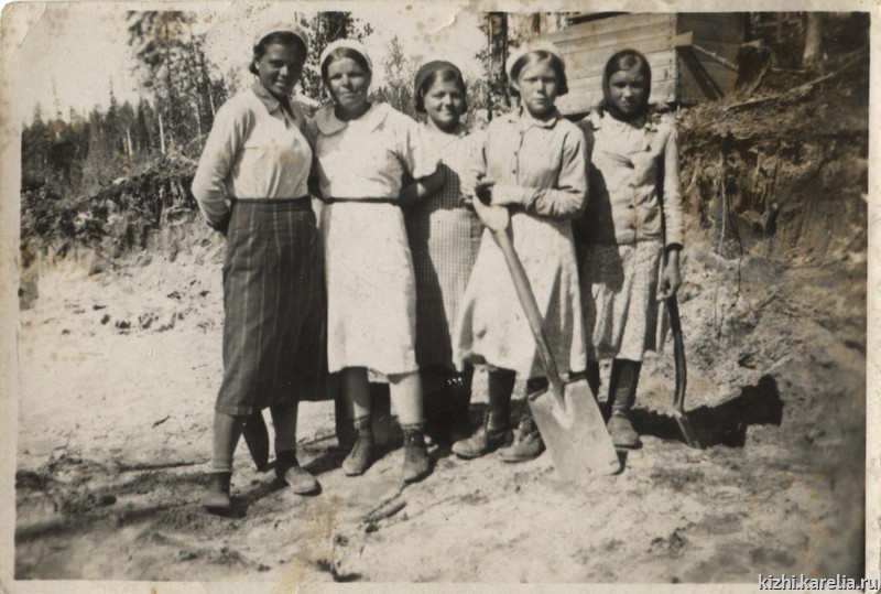 В Типиницах окончила семь классов в 1939 году. Была у нас Школа колхозной молодежи. Село-то большое, да и ребят много было. Школа хорошая была. В то время у нас приехали учителя с ленинградского института или университета — Иван Евсеич да Александра Степановна, дак они долго не могли привыкнуть, как наши заонежские всё говорили. Мы у них училися: Александра Степановна по литературы, Иван Евсеич по истории преподавали. Вот хороши-то учителя были. Да и не такая дисциплина. Ой, мы хоть бедно жили, дак тоже форма была, не скажу — шерстяная, а простая такая, но красиво смотрелися мальчики да девочки.