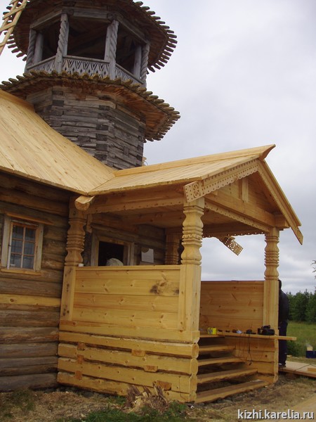 Во время реставрации 2006 г. конструкция кровли была изменена с безгвоздевой на гвоздевую с устройством поддерживающего выпуски кровли бруса на помочах. Полностью из нового материала, на основании старых обмеров и фотографий, было восстановлено крыльцо — на рубленном основании с двускатной крышей, поддерживаемой резными столбами (фото 6).