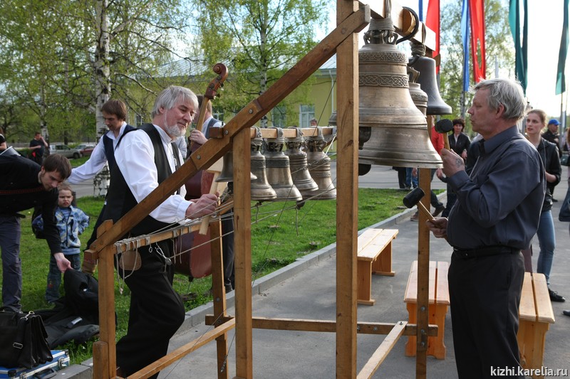 Ночь на Соборной площади началась с традиционных колокольных звонов, исполняемых на передвижной кижской звоннице.