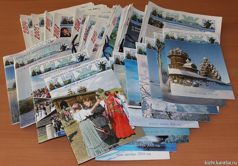 Ежегодно по итогам минувшего года выпускается «Дайджест материалов газеты „Кижи“ (на сегодняшний день их вышло девять), а также тематические дайджесты: „Музейная педагогика“, „Музей и фольклор“, два выпуска „В помощь экскурсоводу“.