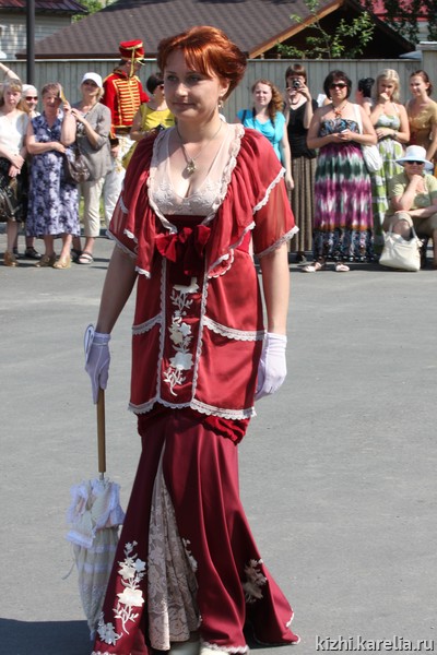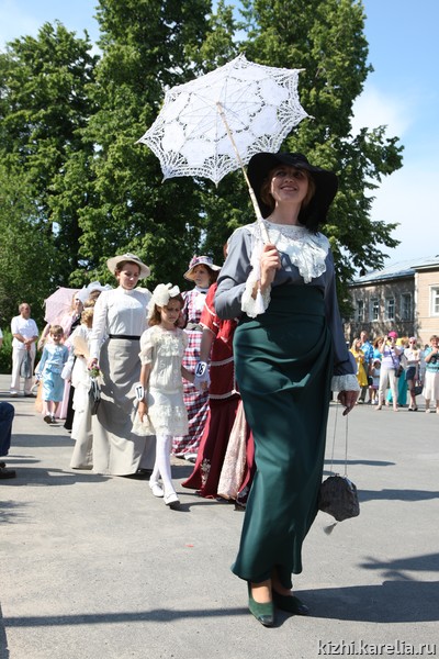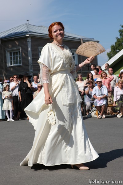 В предельно сложных температурных условиях, когда температура в выставочном зале упорно держалась на критической отметке +30 градусов, 39 участников конкурса с невероятным мужеством продемонстрировали членам жюри роскошные наряды ушедшей эпохи. Многие участники даже подготовили настоящую презентацию своих конкурсных работ — цитировали исторические источники, проводили параллели с современной модой, демонстрировали манеры ушедшей эпохи. Галина Горбачёва, представляющая костюм супруги мастерового, исполнила отрывок из плача заонежской вопленицы Ирины Федосовой. Практически все конкурсные работы были сшиты на основе реальных изображений начала XX века — старинных фотографий, открыток, картинок из журналов моды того времени. Знакомство с костюмами подчас напоминало лекцию по истории: например, Марина Гусева рассказала о том, что сшила костюм, в точности повторяющий тот, что когда-то принадлежал коренной заонежанке Анастасии Трегубовой. Роскошное платье для неё сшила сестра Анна Трегубова, профессиональная портниха, переехавшая из Заонежья в Санкт-Петербург. К слову сказать, в конкурсе костюмов приняла участие барышня, повторившая судьбу Анны: Татьяна Третьякова родом из г. Кондопоги, теперь проживает в северной столице и приехала специально на конкурс, чтобы поддержать совместным участием свою родственницу и полную тёзку Татьяну Третьякову из г. Петрозаводска.