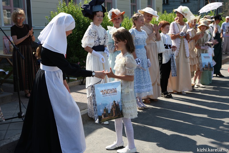 29 июня в квартале исторической застройки карельской столицы прошел пятый, юбилейный праздник «Иллюзии Старого города», организованный музеем-заповедником «Кижи», его партнерами и спонсорами. На несколько часов гости праздника переместились на 100 лет назад, в 1913 год, когда Петрозаводск, вместе со всеми другими городами России, отмечал 300-летие царствования Дома Романовых. Собравшихся поприветствовал «губернатор Олонецкой губернии», и театрализованное празднество завертелось. Как говорится, «смешались в кучу кони, люди»: торговки и пожарные, извозчики и разносчики газет, мастеровые и просто гуляющая публика. Много было ярких и интересных действ, но, пожалуй, как нельзя лучше удался в этом году конкурс «Лучший городской костюм конца XIX — начала XX века», о нём и расскажем.