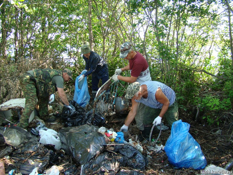 4 июля небольшая команда из сотрудников музея, Национального парка «Водлозерский» при участии местных жителей, которых заранее пригласили участвовать в акции, взялась за расчистку острова. За 3 часа работы 9 человек собрали 67 мешков отходов, и это, не считая крупных вещей. Только стеклянной тары насчитали 18 мешков.