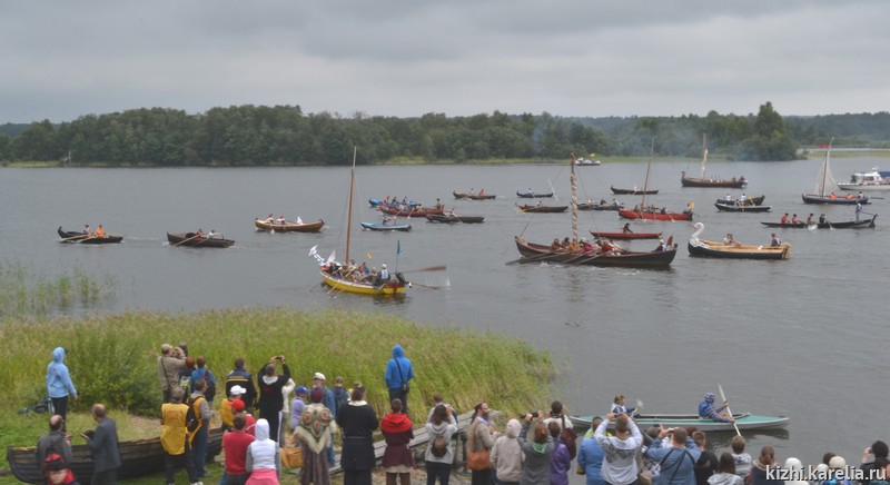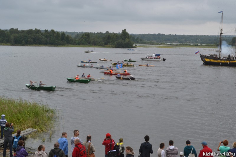На старт Кижской регаты под звон колоколов Кижского погоста вышли 35 лодок. Рядом с «Варварой», экипаж которой нарядился в стилизованные древнерусские костюмы, «Забавой», украшенной цветами и лентами, скромной «Св. Татьяной» пристроился «Злой таракан», команда которого отнюдь не оправдывала название, улыбаясь всем вокруг. В общем, всех не перечислишь.