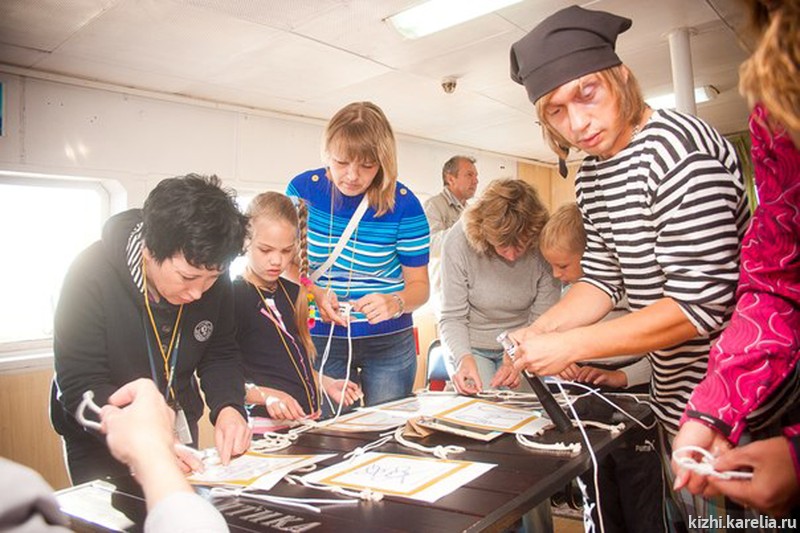 Следующий мини-круиз был семейным. В этот круиз на теплоходе «Сапфир» поехало около 180-ти человек. Это семьи с детьми, классы общеобразовательных школ. Было много маленьких детей дошкольного возраста, но, несмотря на долгую дорогу до острова Кижи и обратно, путешествие прошло неожиданно быстро, захватывающе. Родители удивлялись, почему их малыши не спят. Спать было некогда, так как программа, подготовленная «Onego Palace» совместно с музеем «Кижи», оказалась очень интересной. Главной интригой для детей стала возможность заработать как можно больше памятных значков, которые потом можно было обменять на призы. Задавались разные вопросы на тему «Семья», предлагались задания и конкурсы, дети участвовали в веселых подвижных играх. Многих заинтересовал мастер-класс, в ходе которого желающие смогли изготовить символ солнца — коня из лыка. На протяжении всего круиза на мастер-классе было оживленно. Еще не побывав на острове, туристы уже познакомились с конструктивными особенностями деревянных домов. Вместе с сотрудником музея ребята собирали макет избы. Также музей «Кижи» предложил выполнить эвристические задания, собрать кижские пейзажи и архитектурные памятники из паззлов.