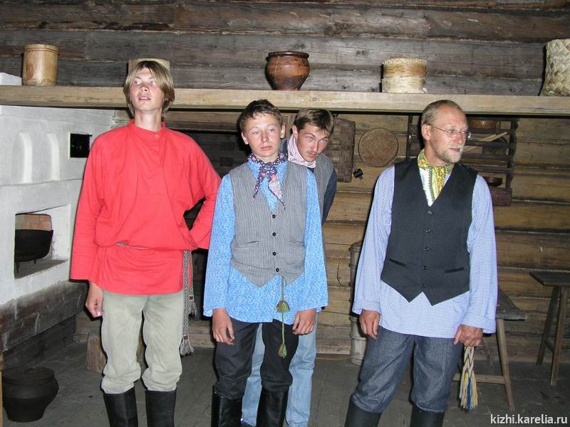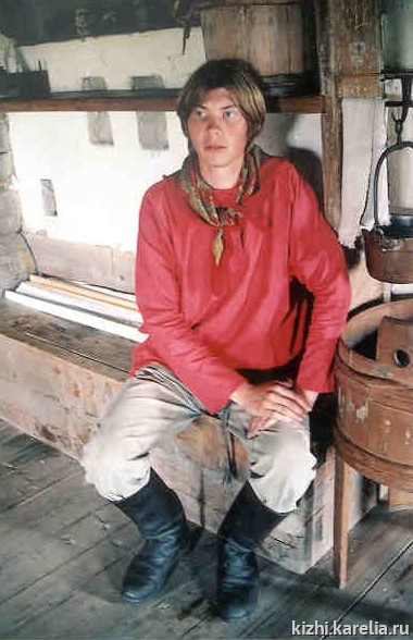 Мужской же костюм состоял из: портов, заправленных в сапоги, ситцевой рубахи-косоворотки и пояса (фото №2).