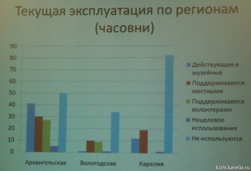 На конференции обсуждался доклад Александра Бокарева «Анализ состояния деревянных храмов и часовен Русского Севера», в котором проведен анализ сохранившихся храмовых построек, а также анализ работ, средств. Больше всего сохранилось объектов в Архангельской области. Более половины от общего количества храмов не используется, что приводит к их разрушению. Самое большое количество неиспользуемых храмов расположены в Архангельской области. Порадовала статистика выполнения работ на памятниках местными жителями, но в то же время специалистами была высказана озабоченность по качеству и сохранению подлинных элементов храмов.