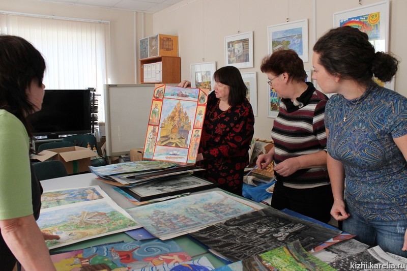Среди такого количества присланных работ непросто было выбрать лучшие. Несомненно, привлекла внимание коллективная работа учащихся Державинского лицея «Купола над островом» («Небесные ладошки»), выполненная в технике лоскутной пластики. Авторы очень гармонично изобразили лемех на главках церкви и пейзажи острова с помощью ткани. Также невозможно было обойти стороной работы детей, обучающихся в студии «Кижская палитра», руководит которой С.А. Петрякова. Работы очень яркие и позитивные, в каждой из них видна индивидуальность ребенка и его способности. Десять призовых мест достались студийцам.