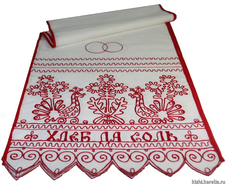 Даже самый простой холст вышивка превращает в произведение прикладного искусства. Заонежские мастерицы славились своим умением всегда, их узоры, сплетенные из завитков, волн и прямых линий, вышитых несложным тамбурным швом, как правило, в один цвет — красный или белый — считаются одними из лучших образцов вышивки Русского Севера. Заонежский полуостров заселялся выходцами из Великого Новгорода. Они и принесли на эти земли традиции старых русских мастеров, в числе которых и вышивка.