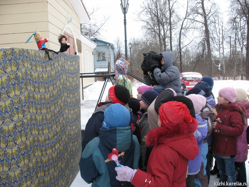 Впервые в музее «Кижи» Масленица тоже неделю «гуляла»: с 3 по 9 марта. От «встречи» в понедельник, до «прощёного воскресенья». Автором этих строк была разработана специальная программа, которую предлагали всем желающим как новую услугу в соответствии с праздничным музейным календарем. А гости у нашего праздника побывали отовсюду: из Москвы, Санкт-Петербурга, Пененги, Суоярви, Питкяранты. Масленица привлекла детей петрозаводских школ №№ 3 и 10, финно-угорской школы, гимназий №№17 и 30, а также участников фестиваля «Кижские колокола», проводимого Дворцом творчества детей и юношества. Были в гостях и семьи, а одна группа даже провела в музее день рождения девочки Антонины, подарив ей и ее друзьям в подарок праздник Масленицу.