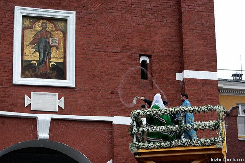 28 августа 2010 года была освящена вновь обретённая надвратная икона «Спас Смоленский» на Спасской башне Московского Кремля. Какая связь может быть между этими иконами — чудотворной иконой Кижского погоста и Московского Кремля? Многое проясняет общее название этих двух образов — «Спас Смоленский». С какими событиями оно связано?