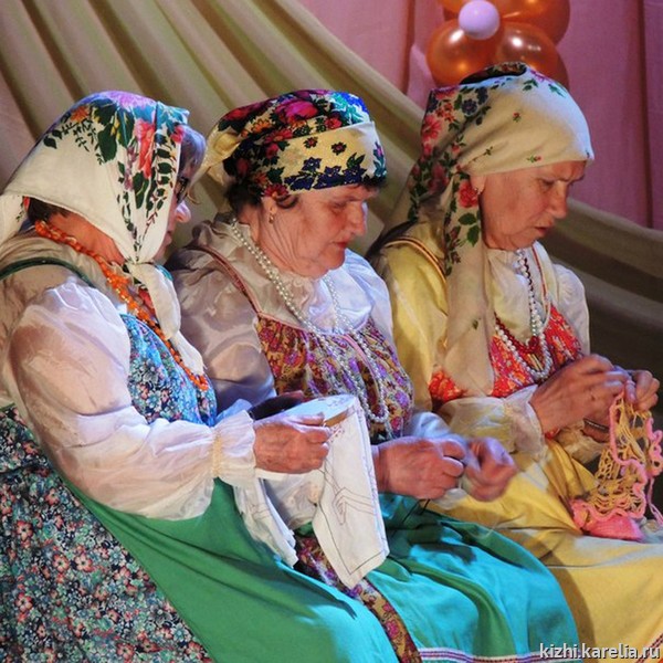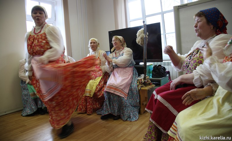 — Чем мы отличаемся от других фольклорных групп? Тем, что мы бесёдуем, разговариваем. Стараемся на заонежском диалекте разговаривать,— делится профессиональными секретами В. И. Росликова.