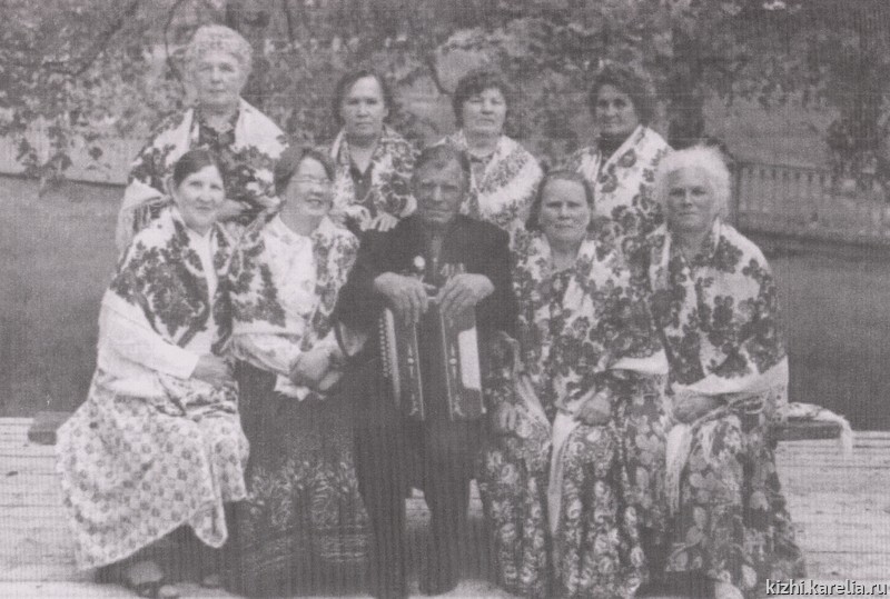Сама В. И. Росликова, выпускница театрального отделения училища культуры в Петрозаводске,— идейный вдохновитель фольклорной группы: и сценарист, и режиссер исполнительских номеров, и хормейстер. На репетиции под ее руководством коллектив собирается трижды в неделю. А сверх того, отдельно, почти тем же составом, проходят репетиции, на которых отрабатывается вокальный репертуар.