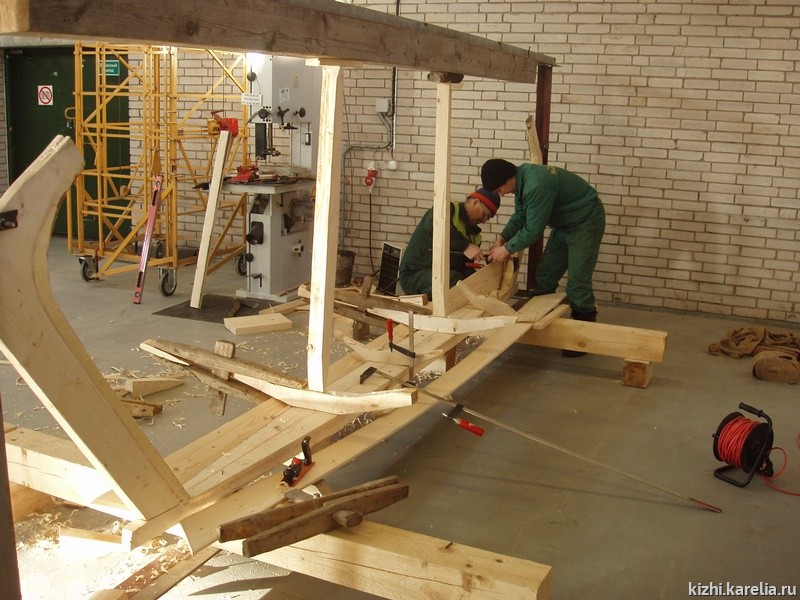 Как рассказал Андрей Ковальчук, начальник Плотницкого центра, это первый опыт строительства традиционной заонежской лодки-кижанки в музее, хотя идея самим построить лодку вынашивалась давно. Сегодня появилась такая возможность благодаря расширению материально-технической базы музея. На острове Кижи введен в эксплуатацию реставрационный комплекс, в одном из помещений которого и начато строительство новой лодки. Материал заготовлен, все неоходимые подготовительные работы прошли с 14 по 18 января, а 21 января сотрудники Плотницкого центра Сергей Николаевич Филин и Андрей Кузнецов приступили к работе. «Музей не стремимся поставить производство лодок на поток, - сказал А.В. Ковальчук, - наша задача – сохранить ремесло, приобрести новый для коллектива Плотницкого центра опыт и принять участие в юбилейной X Кижской регате на своей лодке».