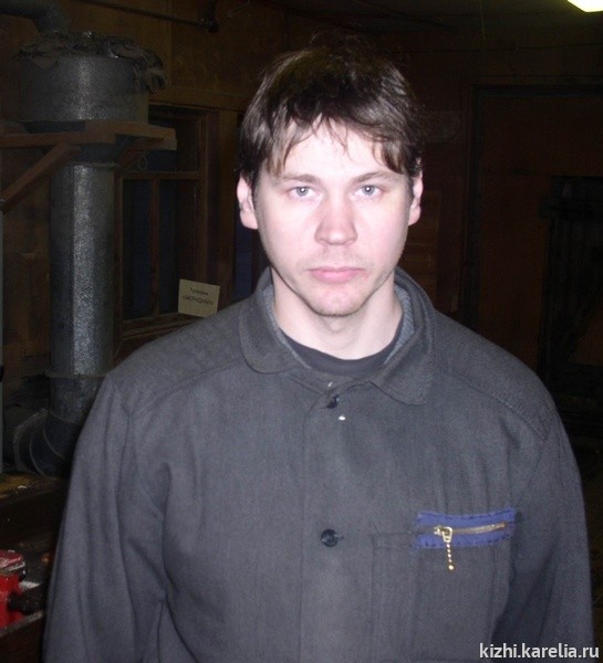 - — Почти четверть века назад, когда мне было 13 лет, я приехал из Гирваса на остров Кижи в гости к сестре, которая была экскурсоводом. Она и по сей день работает в музее. Впоследствии, получив профессию столяра-плотника, я участвовал в реставрации памятников музея «Кижи», работая в подрядной организации АРЦ «Заонежье». Теперь работаю в столярной мастерской АХЧ на острове, где работа не прекращается круглый год. Я рад, что моя жизнь связана с музеем «Кижи», и что моя профессия и навыки работы здесь нужны.