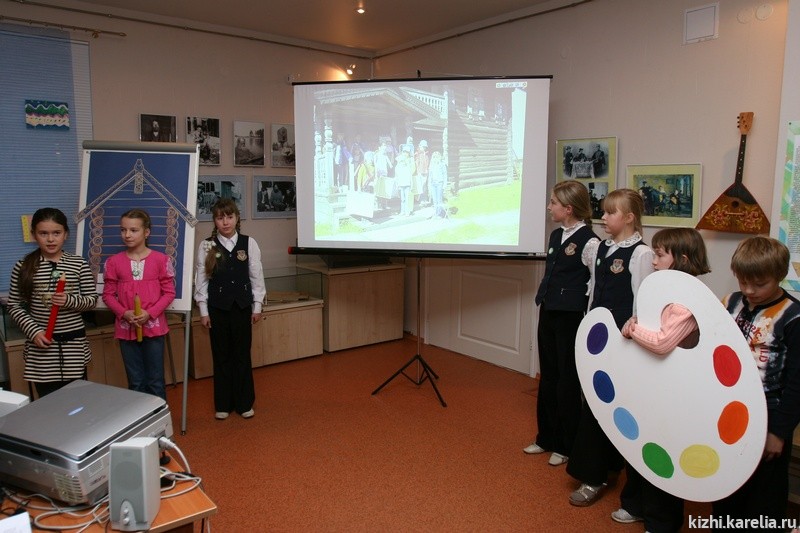 Детские творческие отчеты на встрече были представлены как самими детскими группами, так и в мультимедийных версиях, присланных из Москвы и Ханты-Мансийска. Проекты детей из-за пределов республики были особенно свежими по восприятию природы и истории Карелии, Заонежья и Кижей. Их работы – рисунки, игрушки, аппликации были представлены на отчетной выставке и вызывали неподдельный интерес у гостей.