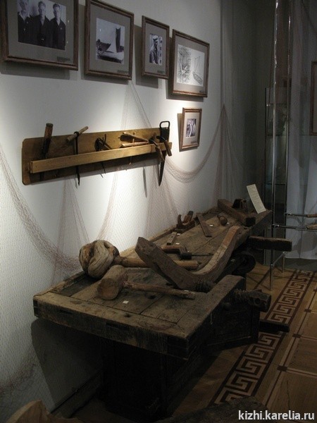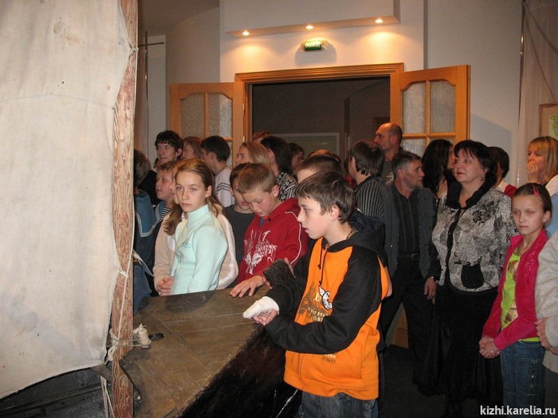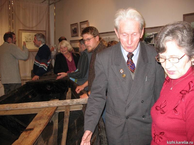 Шестиметровая кижанка - центральный экспонат выставки – предстала перед первыми гостями во всей красе, пахнущая смолой и онежской водой. «Построена лодка мастером из деревни Шуйна на Волкострове В.Н. Бурковым. – сказал автор выставки Юрий Наумов. – Мне очень повезло, я увидел работу настоящих кижских лодочных мастеров».