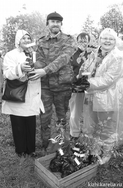 Но подарки от музея еще не закончились, неожиданным сюрпризом оказался подарок от отдела сохранения и мониторинга природного наследия. Всем желающим были подарены саженцы вяза шершавого – реликта острова Кижи. Кусочек благословенного острова они увезли с собой.