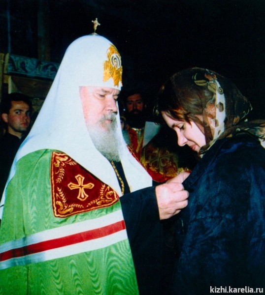 Неизгладимое впечатление произвела Патриаршая служба 2000 года на острове Кижи в нашей простой крестьянской Покровской церкви. Чувствовался всеобщий душевный подъем, хотелось работать еще больше и лучше.
