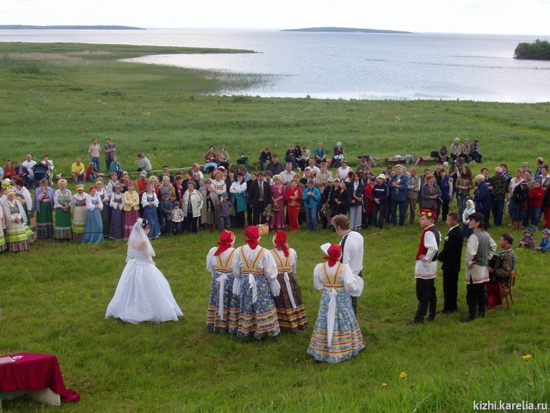 Молебном, который отслужил отец Георгий из Медвежьегорска на деревенском кладбище у могильного камня народной поэтессы Ирины Федосовой начался праздник, посвященный ее 180-летию. Затем праздничное действо переместилось на большую поляну на онежском берегу, где их ждала настоящая заонежская свадьба.