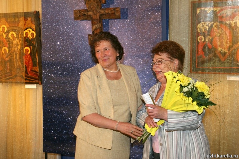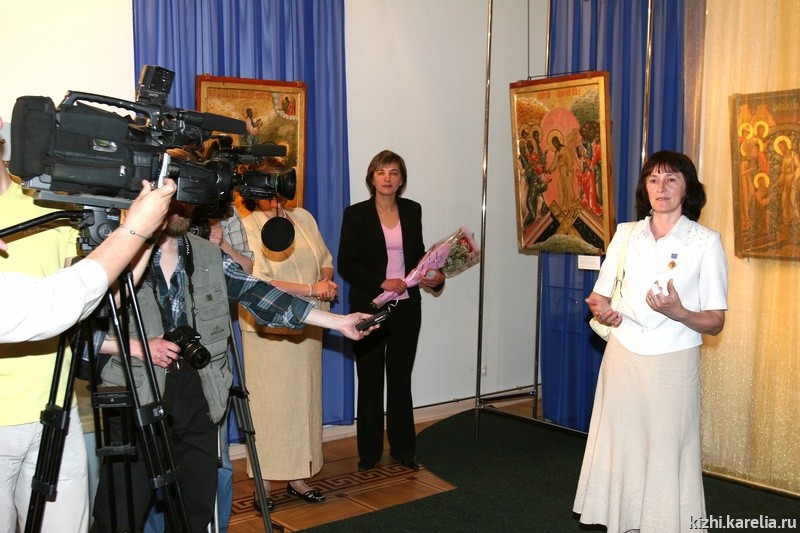 «Это не первая выставка икон из фондов музея-заповедника „Кижи“,— сказала, открывая выставку, директор музея Эльвира Аверьянова.— Эта выставка является логическим продолжением предыдущих выставок, которые удивляли своим богатством и содержательностью не только петрозаводчан, но и москвичей, и жителей далекого Ханты-Мансийска. Я рада поздравить творческий коллектив, работавший над созданием выставки, всех сотрудников и гостей музея „Кижи“ с новой творческой удачей».