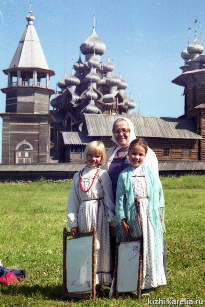 «Когда мы в первый раз показывали в избе дома Ошевнева «Выход невесты за столы», - рассказывает Л. Трифонова, - многие посетители плакали, слушая причеть, видя волнение нашей юной «невесты» и не менее юного «жениха». Группа англичан, решив, что они присутствуют на настоящей свадьбе, пытались одарить Дашу Быкадорову, которая исполняла роль невесты». При исполнении песен и танцев участниками музейной фольклорной группы учитывались десятки мелочей: детально точное воссоздание повседневного и праздничного костюма, манеры движения, расположение и оформление традиционных мест в избе. С помощью всех этих деталей создавалась этнографическая картинка с неповторимой атмосферой правдивости действия. - С начала своей деятельности фольклорный коллектив музея является неизменным участником ежегодных музейных праздников на острове Кижи.