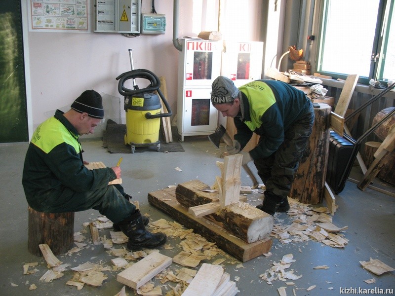 В настоящее время 16 сотрудников Плотницкого центра работают на двух больших объектах — ведут профилактические работы на Покровской церкви и реставрируют амбар из деревни Пелдожи.