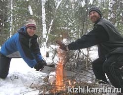 Песни у костра, жареные сосиски и сало, ароматный чай с мхом, лишайниками, щепками и прочей заваркой — непременные составляющие похода, и, как приятное дополнение, замечательная погода и мягкий снег.