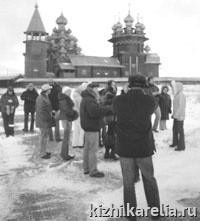 Более часа продолжалась каждая экскурсия по маршруту: архитектурный ансамбль Кижского погоста, с посещением Покровской церкви; зимняя изба дома Ошевнева, амбар, баня, церковь Воскрешения Лазаря. К этому пункту маршрута по обыкновению легко одетые москвичи просто замерзали, но наиболее активные и любознательные доходили и до мельницы, и до часовни Архангела Михаила».