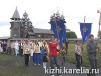 К крестному ходу вокруг Кижского погоста подходило множество туристических групп. Гости острова искренне радовались, что попали на Кижи именно в этот день и стали свидетелями такого красивого действа. В завершение празднования Дня Преображения Господня свои двери, по традиции, открыла Преображенская церковь и приняла в подарок цветы и рябиновые букеты от участников праздника.
