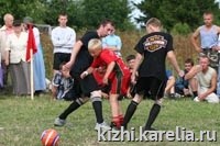 На футбольном поле всегда жарко. Встречаются команды из разных деревень: Воробьи, Лонгасы, Кургеницы, Еглово, Ерснево, Жарниково и др. Музей выставляет и свои команды – экскурсоводов, пожарных, плотников и АХЧ. Жеребьевка команд сразу после молебна проводится директором музея-заповедника «Кижи» Ельви Аверьяновой и настоятелем Спасо-Кижского Патриаршего Подворья протоиреем Николаем Озолиным.