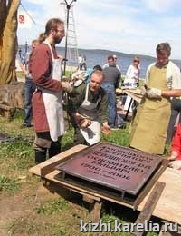 Валерий Хазов, участник «Ожившей экспозиции» музея-заповедника «Кижи» и его помощники Владислав Пестов и Юрий Сабанцев принимали участие в коллективном кузнечном проекте «Памятный знак губернатору Левашову В.А. – основателю бульвара.1900-2006». «Заготовки для памятного знака делали всю неделю. Для каждой команды было свое задание, а сегодня все части знака должны быть собраны вместе», – рассказал Валерий Сергеевич. Памятный знак теперь украшает Левашовский бульвар в Петрозаводске.