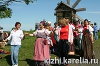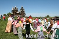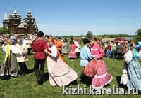 На острове 12 июня на "Поляне сокровищ" работали "Музей фольклора" и "Музей ремесел". Кижские красавицы еще раз предстали перед зрителями во всей своей девичьей красе. Их наряды особенно эффектно смотрелись на фоне почти нереальных архитектурных сооружений. Казалось, что это девушки XVIII века съехались на ярмарку себя показать и суженых поискать... За костюм, посвященный Кижам, гран-при от музея получила Настя Волхова из Петрозаводска.